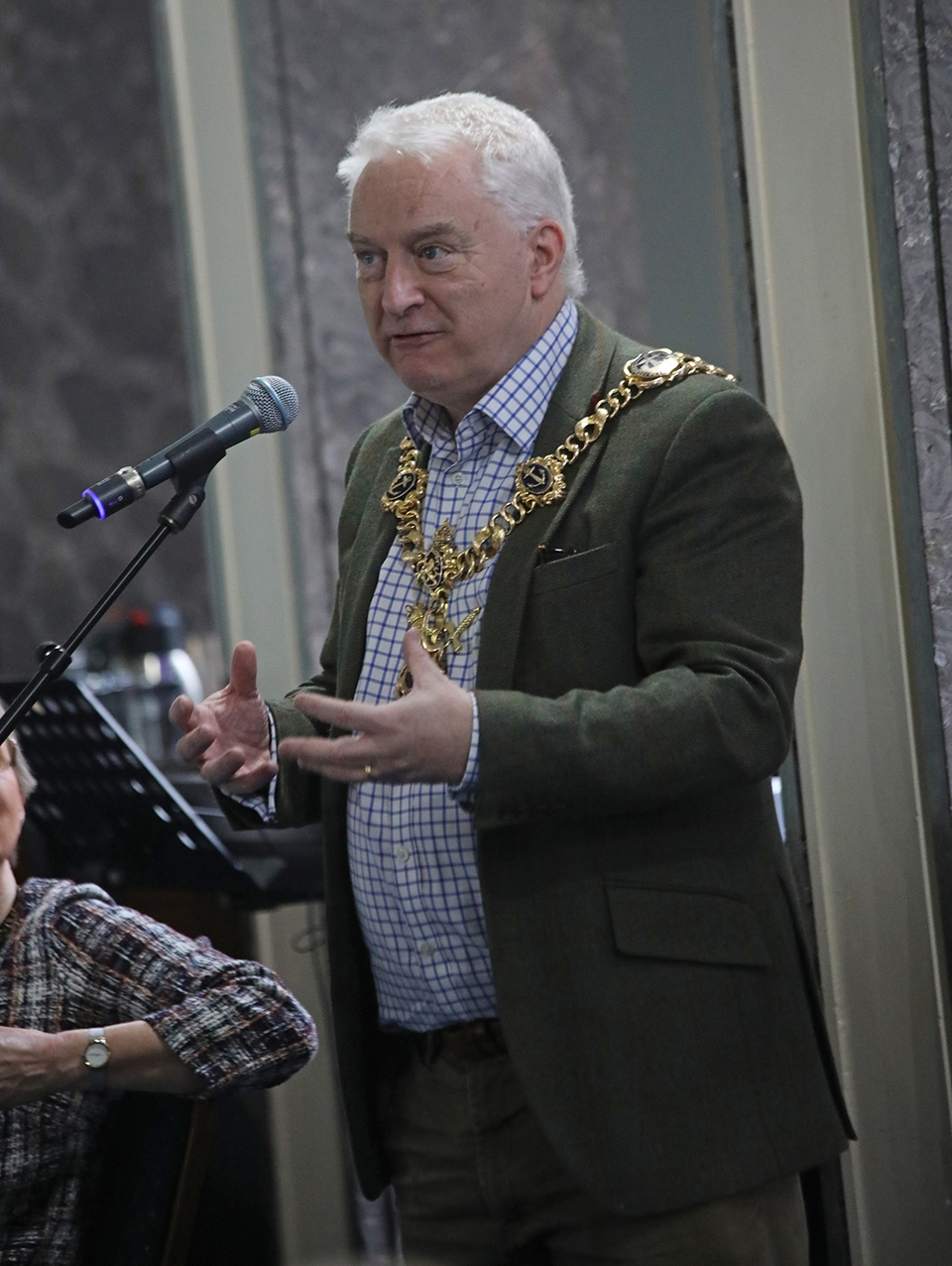 The Lord Mayor of Portsmouth, Cllr Gerald Vernon-Jackson, welcomed those who had gathered in the Banqueting Room for bacon or vegetarian/halal rolls, a fruit platter and coffee.